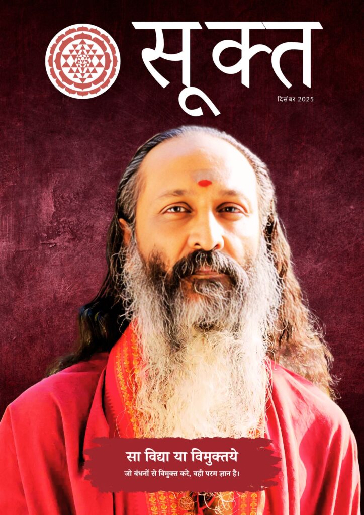 दिसंबर 2025 सूक्तसूक्त : हिन्दी आध्यात्मिक मासिक पत्रिका प्रकाशक: महाविद्या साधना केंद्र संपादक: सुजाना मेरेड्डी मुफ़्त ऑनलाइन आध्यात्मिक पत्रिका सा विद्या या विमुक्तये जो बंधनों से विमुक्त करे, वही परम ज्ञान है।